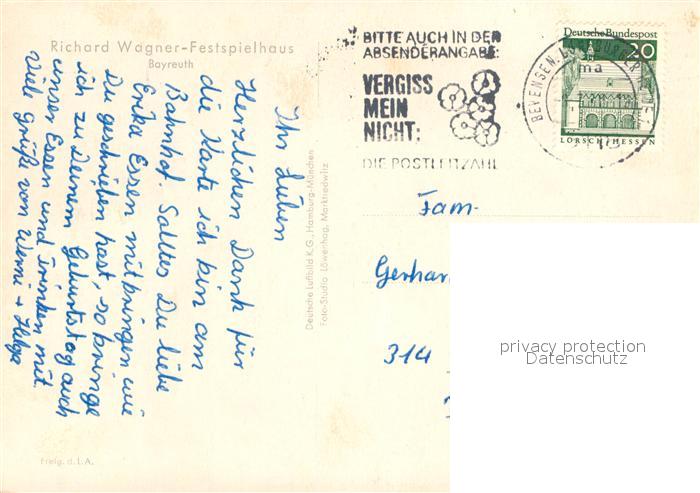 72929753 alte Postkarte Bayreuth Fliegeraufnahme Richard Wagner Festspielhaus postalisch gelaufen Erhaltung siehe scans [KathaD81] KatCode: 11110009462000