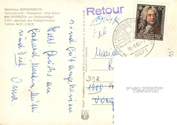 73159276 alte Postkarte Bayreuth Gaestehaus Buergerreuth Terrassencafe Restaurant postalisch gelaufen Erhaltung siehe scans [WerneD78] KatCode: 11110009462000