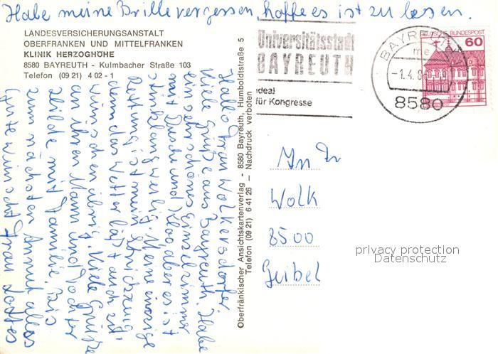72931457 alte Postkarte Bayreuth Klinik Herzoghoehe postalisch gelaufen Erhaltung siehe scans [KathaD81] KatCode: 11110009462000