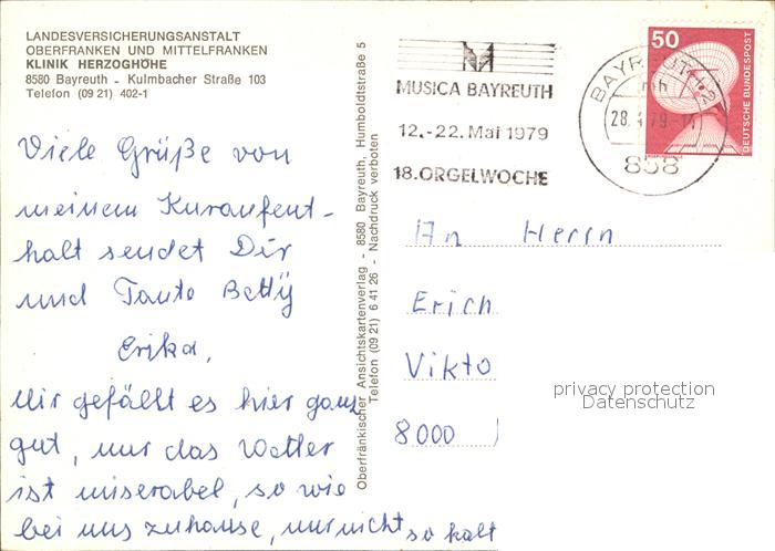 72580604 alte Postkarte Bayreuth Klinik Herzoghoehe postalisch gelaufen Erhaltung siehe scans [KathaD79] KatCode: 11110009462000