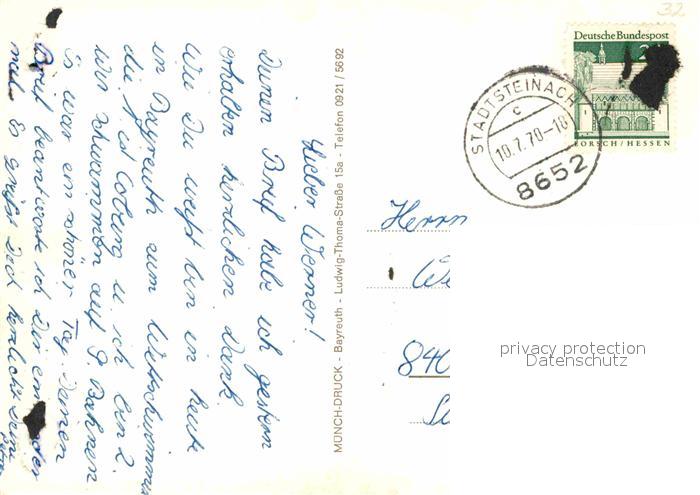 72792042 alte Postkarte Bayreuth Kreuzsteinbad postalisch gelaufen Erhaltung siehe scans [NatalD47] KatCode: 11110009462000