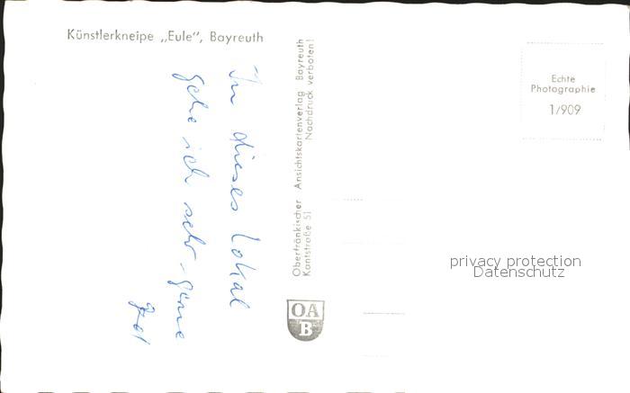 72114373 Bayreuth Kuenstlerkneipe Eule postalisch nicht gelaufen Erhaltung siehe scans KatCode: 11110009462000
