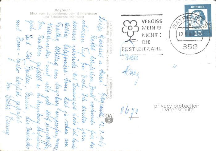 72183309 alte Postkarte Bayreuth Luitpoldplatz Gontardhaus und Schlosscafe Metropol postalisch gelaufen Erhaltung siehe scans KatCode: 11110009462000