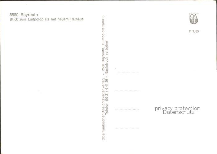 72392553 Bayreuth Luitpoldplatz neue Rathaus postalisch nicht gelaufen Erhaltung siehe scans KatCode: 11110009462000