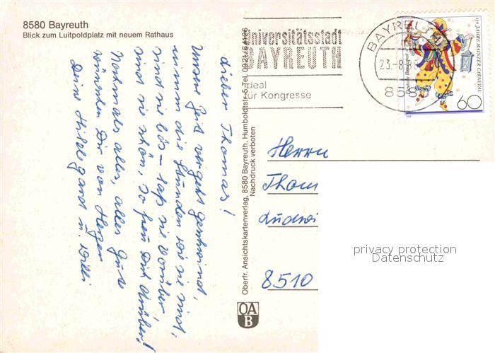 72777353 alte Postkarte Bayreuth Luitpoldplatz neues Rathaus postalisch gelaufen Erhaltung siehe scans [KathaD81] KatCode: 11110009462000