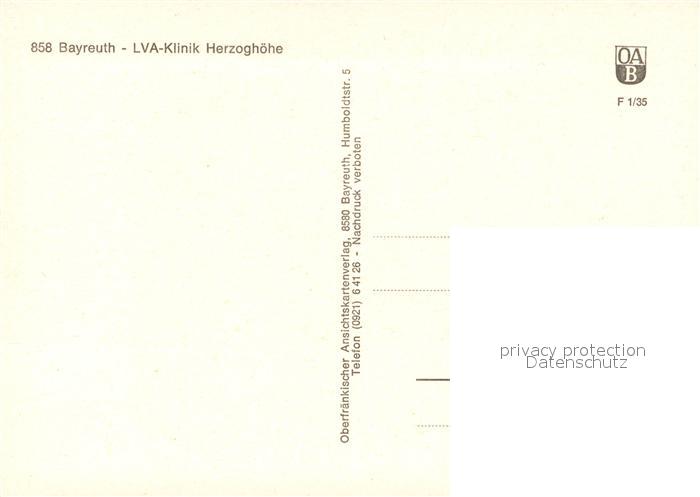 73228802 Bayreuth LVA Klinik Herzoghoehe postalisch nicht gelaufen Erhaltung siehe scans [FriedD77] KatCode: 11110009462000