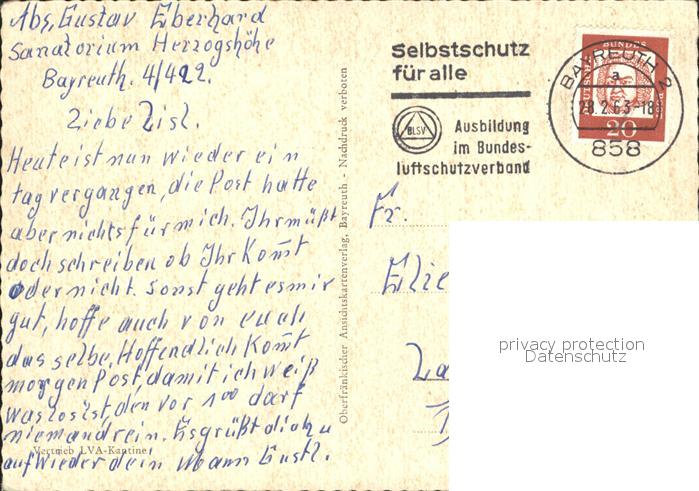 72042920 alte Postkarte Bayreuth LVA Sanatorium Herzoghoehe postalisch gelaufen Erhaltung siehe scans KatCode: 11110009462000