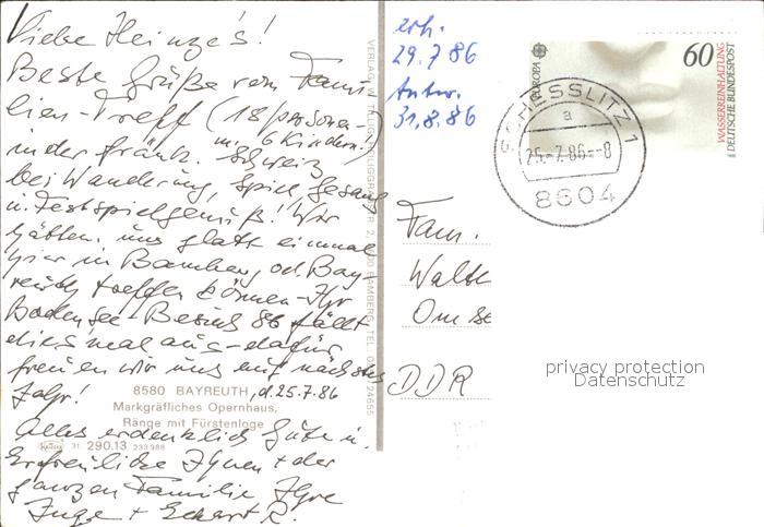 72370586 alte Postkarte Bayreuth Markgraefliches Opernhaus Raenge Fuerstenlage postalisch gelaufen Erhaltung siehe scans KatCode: 11110009462000