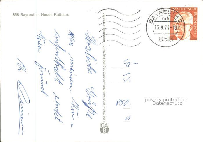 72006346 alte Postkarte Bayreuth Neues Rathaus postalisch gelaufen Erhaltung siehe scans KatCode: 11110009462000