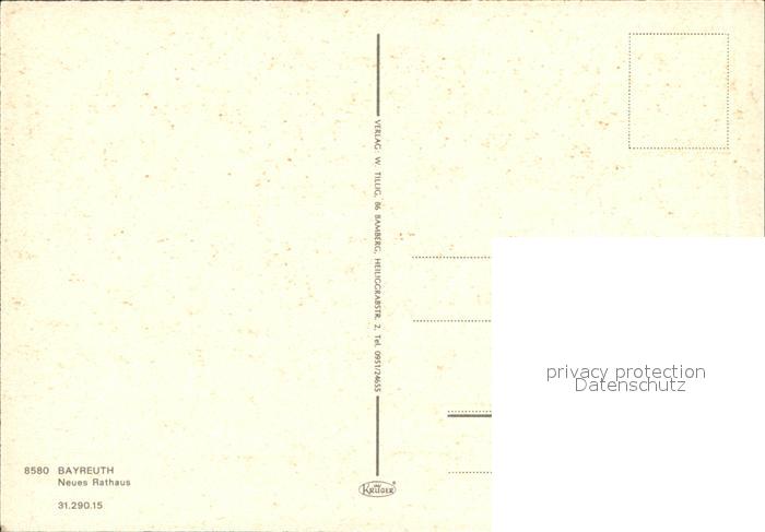 72530787 Bayreuth Neues Rathaus postalisch nicht gelaufen Erhaltung siehe scans [LiesaD40 kt094box] KatCode: 11110009462000