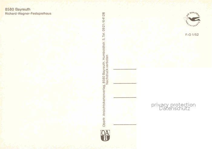 72752928 Bayreuth Richard Wagner Festspielhaus postalisch nicht gelaufen Erhaltung siehe scans [KathaD81] KatCode: 11110009462000