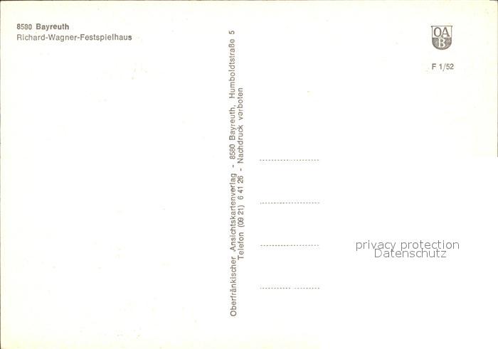 72361381 Bayreuth Richard-Wagner-Festspielhaus postalisch nicht gelaufen Erhaltung siehe scans KatCode: 11110009462000