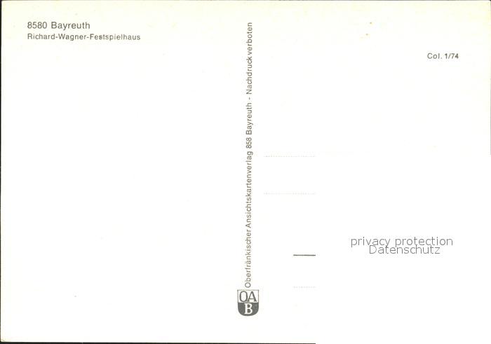 72316952 Bayreuth Richard Wagner Festspielhaus postalisch nicht gelaufen Erhaltung siehe scans KatCode: 11110009462000