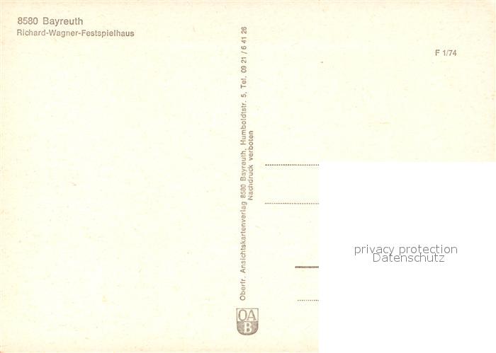 73160820 Bayreuth Richard Wagner Festspielhaus postalisch nicht gelaufen Erhaltung siehe scans [KathaD81] KatCode: 11110009462000