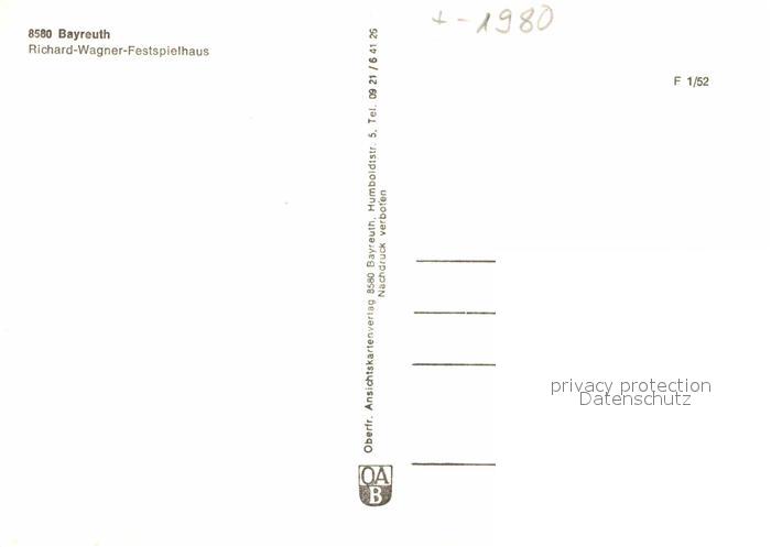 72909263 Bayreuth Richard-Wagner-Festspielhaus postalisch nicht gelaufen Erhaltung siehe scans [NatalD47] KatCode: 11110009462000