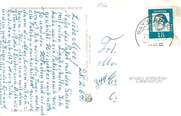 73136923 alte Postkarte Bayreuth Staatliches Versehrtenkrankenhaus Fliegeraufnahme postalisch gelaufen Erhaltung siehe scans [FriedD77] KatCode: 11110009462000