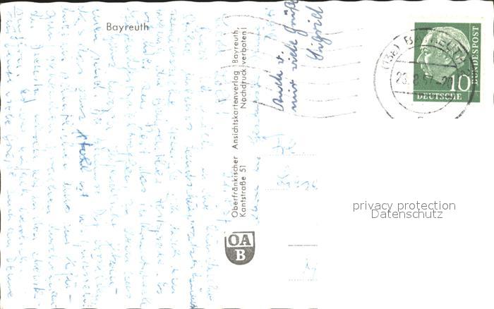 72209352 alte Postkarte Bayreuth Stadtblick postalisch gelaufen Erhaltung siehe scans KatCode: 11110009462000