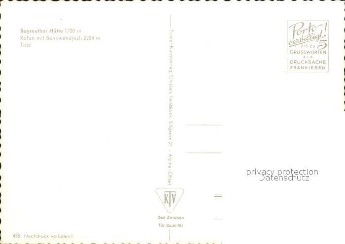72032039 Bayreutherhuette Rofan Sonnwendjoch postalisch nicht gelaufen Erhaltung siehe scans KatCode: 11390335070512