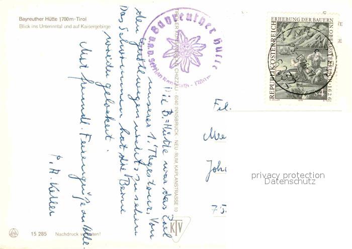 72913870 alte Postkarte Bayreutherhuette Unterinntal Kaisergebirge postalisch gelaufen Erhaltung siehe scans [KathaD81] KatCode: 11390335070512