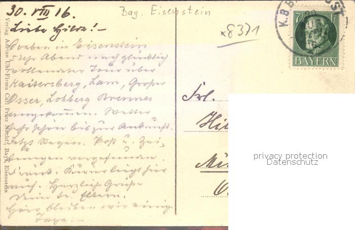 42236686 alte Postkarte Bayrisch Eisenstein Arber postalisch gelaufen Erhaltung siehe scans KatCode: 11110009276115