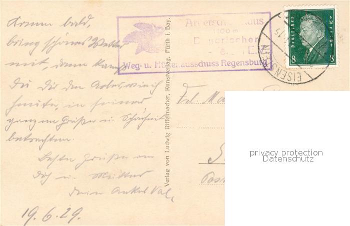 43350149 alte Postkarte Bayrisch Eisenstein Arbergipfel von der Stierwiese gesehen postalisch gelaufen Erhaltung siehe scans [WerneD78] KatCode: 11110009276115