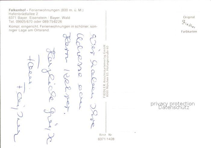 71905701 Bayrisch Eisenstein Ferienwohnungen Falkenhof postalisch nicht gelaufen Erhaltung siehe scans KatCode: 11110009276115