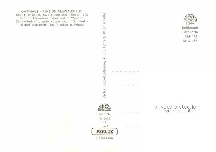 72706203 Bayrisch Eisenstein Gasthaus Pension Neuwaldhaus postalisch nicht gelaufen Erhaltung siehe scans [WerneD78] KatCode: 11110009276115