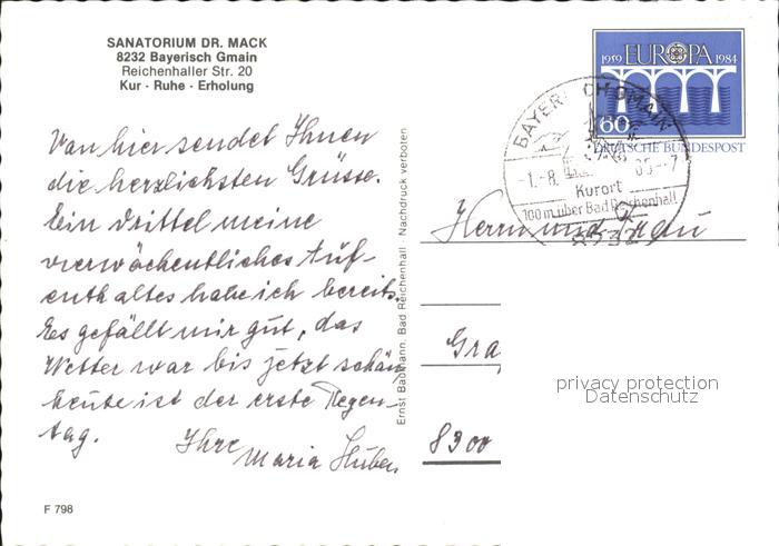 72311340 alte Postkarte Bayrisch Gmain Tirol Sanatorium Dr. Mack postalisch gelaufen Erhaltung siehe scans KatCode: 11390
