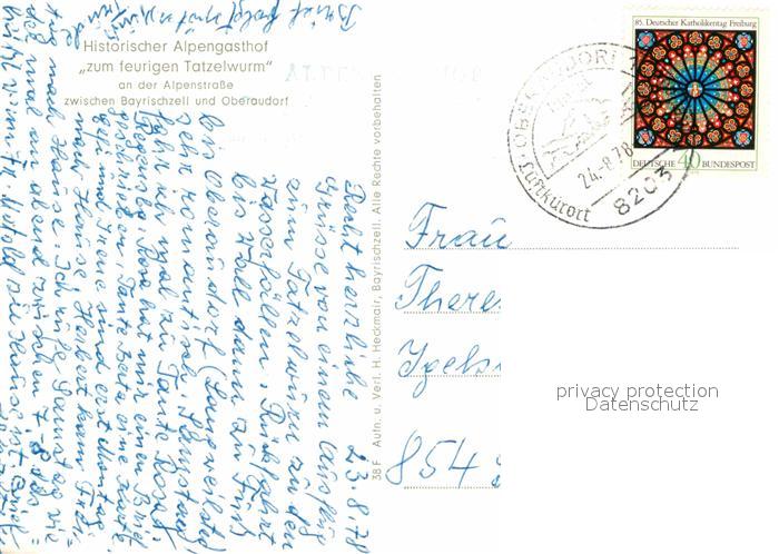 72698958 alte Postkarte Bayrischzell Alpengasthaus Tatzelwurm Alpenstrasse postalisch gelaufen Erhaltung siehe scans [KathaD79] KatCode: 11110009182112