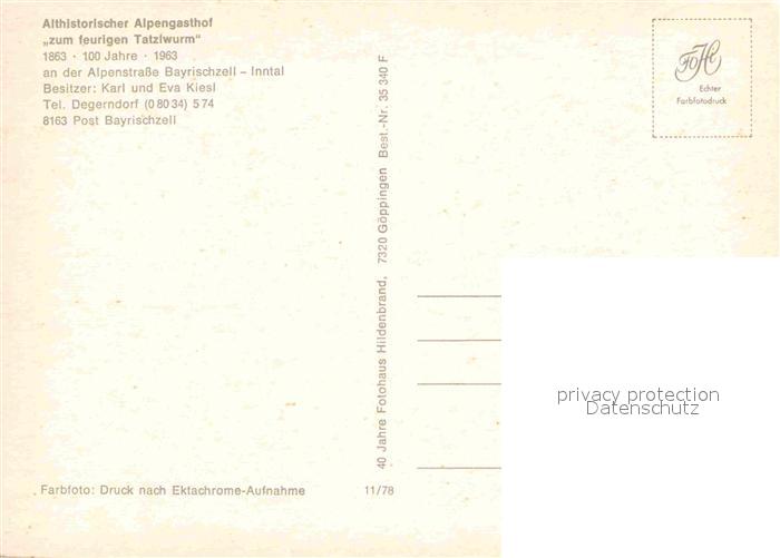 72856917 Bayrischzell Alpengasthaus zum feurigen Tatzelwurm postalisch nicht gelaufen Erhaltung siehe scans [AndreD76] KatCode: 11110009182112