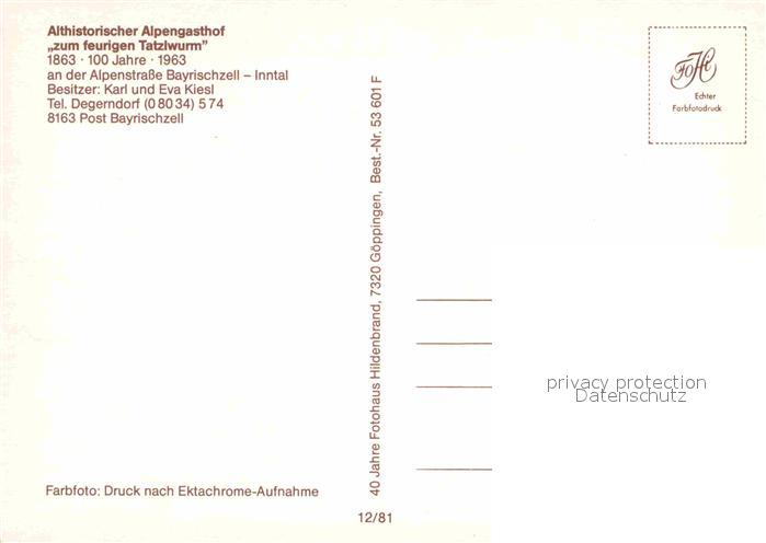 72856916 Bayrischzell Alpengasthaus zum feurigen Tatzelwurm postalisch nicht gelaufen Erhaltung siehe scans [AndreD76] KatCode: 11110009182112