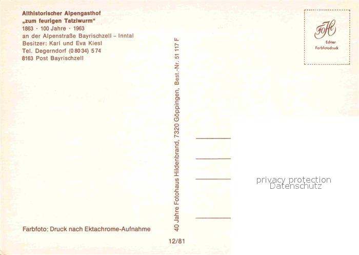 72856918 Bayrischzell Alpengasthaus zum feurigen Tatzelwurm postalisch nicht gelaufen Erhaltung siehe scans [AndreD76] KatCode: 11110009182112