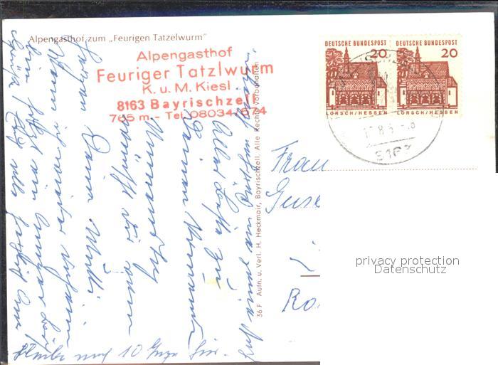 71838895 alte Postkarte Bayrischzell Alpengasthof zum Feurigen Tatzelwurm postalisch gelaufen Erhaltung siehe scans KatCode: 11110009182112