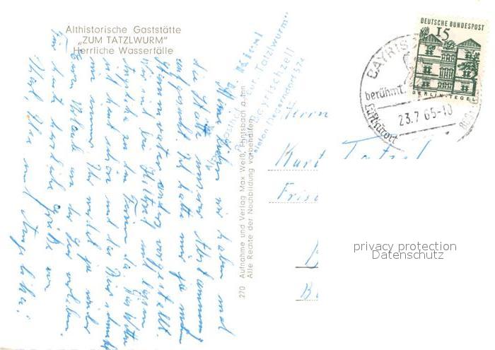 72986530 alte Postkarte Bayrischzell Alpengasthof Zum feurigen Tatzelwurm Gaststube Wasserfall postalisch gelaufen Erhaltung siehe scans [WerneD78] KatCode: 11110009182112