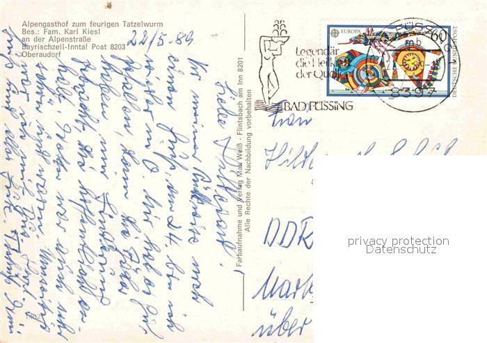 72847762 alte Postkarte Bayrischzell Alpengasthof zum feurigen Tatzelwurm im Inntal postalisch gelaufen Erhaltung siehe scans [FriedD77] KatCode: 11110009182112