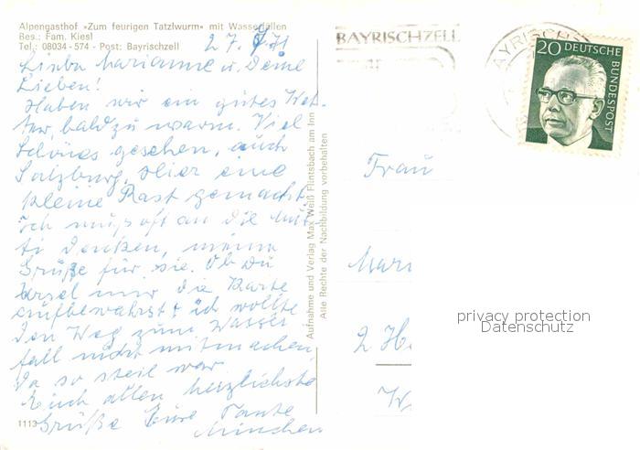 72840293 alte Postkarte Bayrischzell Alpengasthof Zum feurigen Tatzelwurm mit Wasserfaellen postalisch gelaufen Erhaltung siehe scans [WerneD78] KatCode: 11110009182112