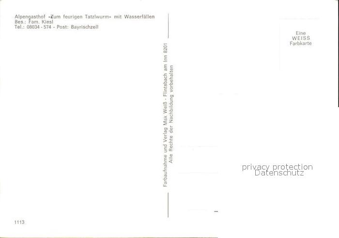 71920924 Bayrischzell Alpengasthof Zum feurigen Tatzelwurm mit Wasserfaellen postalisch nicht gelaufen Erhaltung siehe scans KatCode: 11110009182112