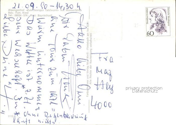 72309301 alte Postkarte Bayrischzell Alpengasthof Zum feurigen Tatzelwurm Wasserfaelle postalisch gelaufen Erhaltung siehe scans KatCode: 11110009182112