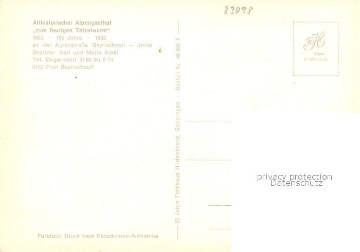 73124335 Bayrischzell Alpengasthof Zum feurigen Tatzlwurm postalisch nicht gelaufen Erhaltung siehe scans [KathaD81] KatCode: 11110009182112