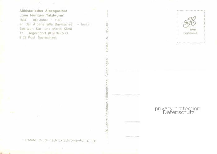 72630575 Bayrischzell Alpengasthof zum feurigen Tatzlwurm postalisch nicht gelaufen Erhaltung siehe scans [LiesaD40] KatCode: 11110009182112