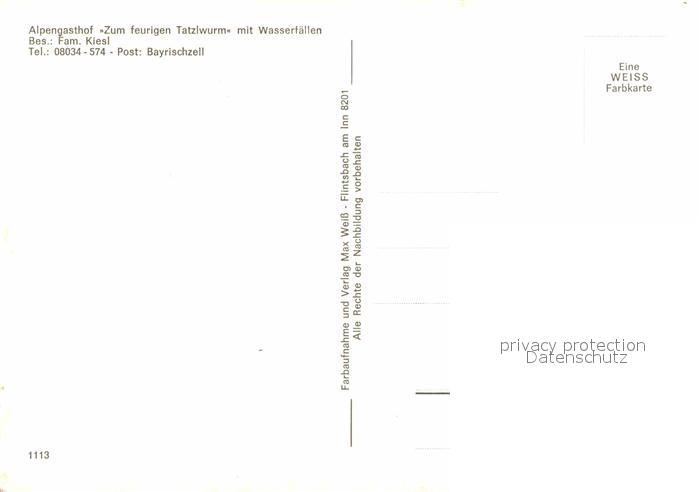 72783857 Bayrischzell Alpengasthof Zum feurigen Tatzlwurm Wasserfall postalisch nicht gelaufen Erhaltung siehe scans [FriedD77] KatCode: 11110009182112