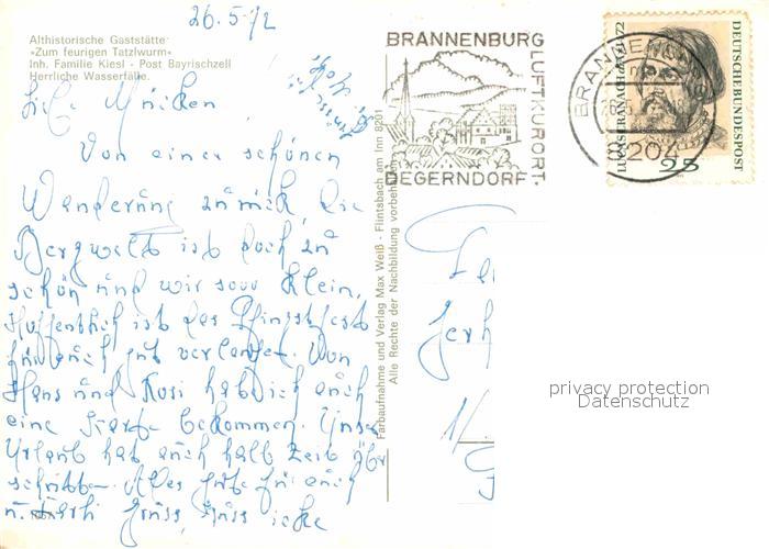 72824187 alte Postkarte Bayrischzell Althistorische Gaststaette Zum feurigen Tatzlwurm Wasserfall Almauftrieb postalisch gelaufen Erhaltung siehe scans [FriedD77] KatCode: 11110009182112