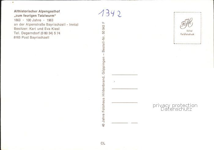 72539265 Bayrischzell Althistorischer Alpengasthof zum feurigen Tatzelwurm postalisch nicht gelaufen Erhaltung siehe scans [AndreD76 kt119box] KatCode: 11110009182112