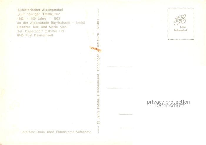 73056284 alte Postkarte Bayrischzell Althistorischer Alpengasthof zum feurigen Tatzelwurm Wasserfall postalisch gelaufen Erhaltung siehe scans [WerneD78] KatCode: 11110009182112