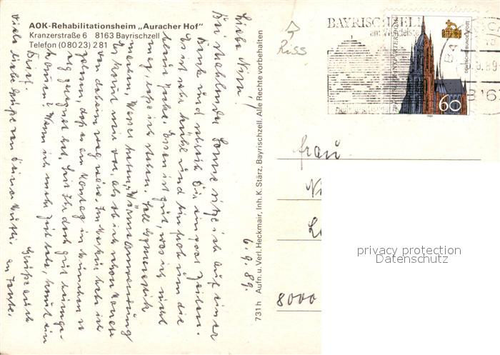 73249043 alte Postkarte Bayrischzell AOK Rehabilitationsheim Auracher Hof Fliegeraufnahme postalisch gelaufen Erhaltung siehe scans [FriedD77] KatCode: 11110009182112