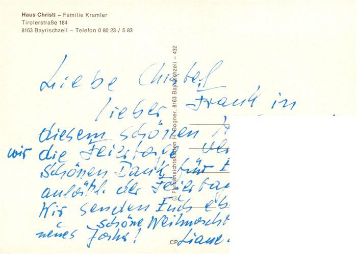 73907413 Bayrischzell Bayrisch Zell Haus Christl postalisch nicht gelaufen Erhaltung siehe scans [WerneD78] KatCode: 11110009182112