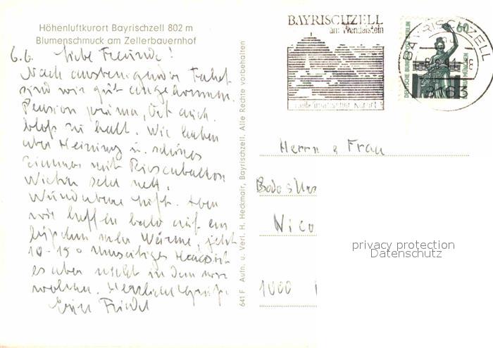 72825135 alte Postkarte Bayrischzell Blumenschmuck am Zellerbauernhof postalisch gelaufen Erhaltung siehe scans [FriedD77] KatCode: 11110009182112