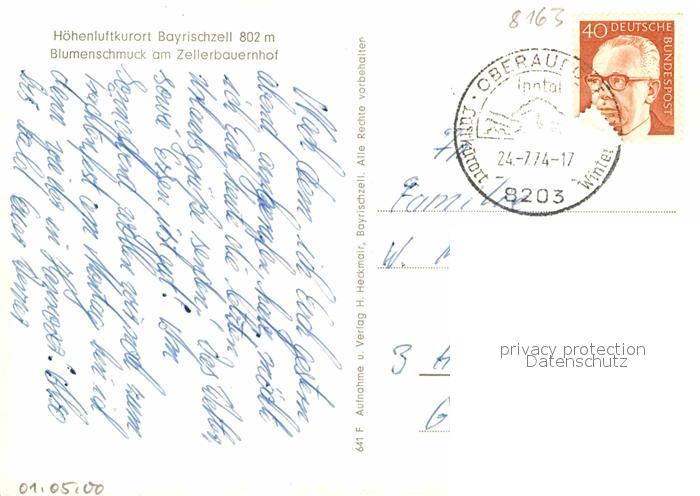 72912397 alte Postkarte Bayrischzell Blumenschmuck am Zellerbauernhof postalisch gelaufen Erhaltung siehe scans [FriedD77] KatCode: 11110009182112