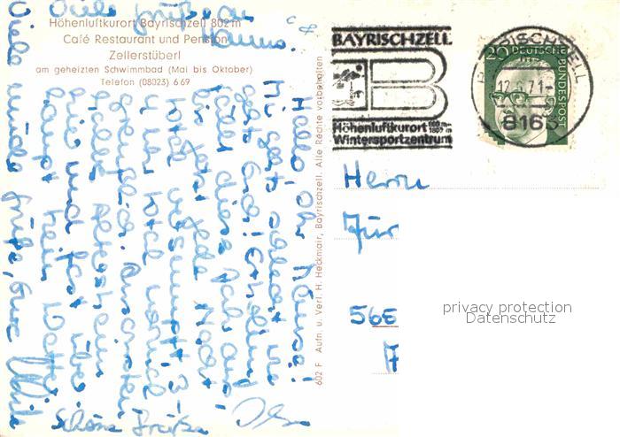 72863275 alte Postkarte Bayrischzell Cafe Restaurant Pension Zellerstueberl mit Freibad postalisch gelaufen Erhaltung siehe scans [LiesaD40] KatCode: 11110009182112