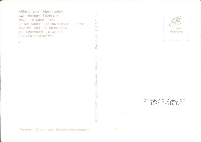 71938880 Bayrischzell Der Feurige Tatzlwurm Althistorischer Alpengasthof Wasserfall postalisch nicht gelaufen KatCode: 11110009182112
